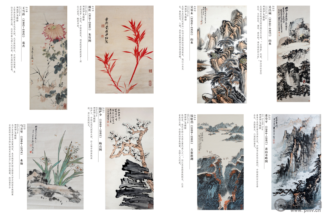 本場拍賣會全場設無底價(500元)起拍, 薈萃了近現代名家書畫大師力作。拍品有黃賓虹、徐悲鴻、齊白石、張大千、傅抱石、潘天壽、陸儼少、吳湖帆、溥儒、石魯、黃胄、黃君壁、馬晉、錢松喦、魏紫熙、宋文治、董壽平、豐子愷、劉文西等名家之作, 還有八大山人、石濤、吳昌碩等難得一見的書畫藝術拍品,書法名家拍品還有啟功、趙樸初、沈尹默、沙孟海、舒同、王文治、林散之等書法佳作以及清代名人雅士的書法精品。